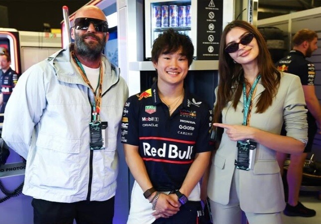 角田裕毅とジェイソン・ステイサムとエミリー・ラタコウスキー