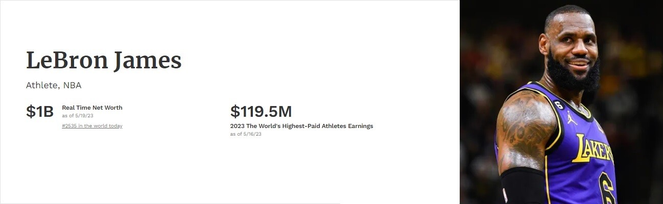 2023年世界スポーツ選手長者番付トップ50のうち11人が新たにランクインし、さらに6人がリストに復活した。今回もNBA(バスケットボール)の選手が最多の15人だが、それ以上に注目すべきはゴルファーの急増で、昨年の3人から4倍の12人がトップ50に登場したが、これは主にLIVゴルフの高額な前払い保証のおかげだ。昨年19位の大坂なおみがランク外になり、日本人はいなくなった。そして女性アスリートも、セリーナ・ウィリアムズ、ひとりになった。また、トップアスリート50人のうち16人は30歳未満で、そのうち5人は25歳以下である。