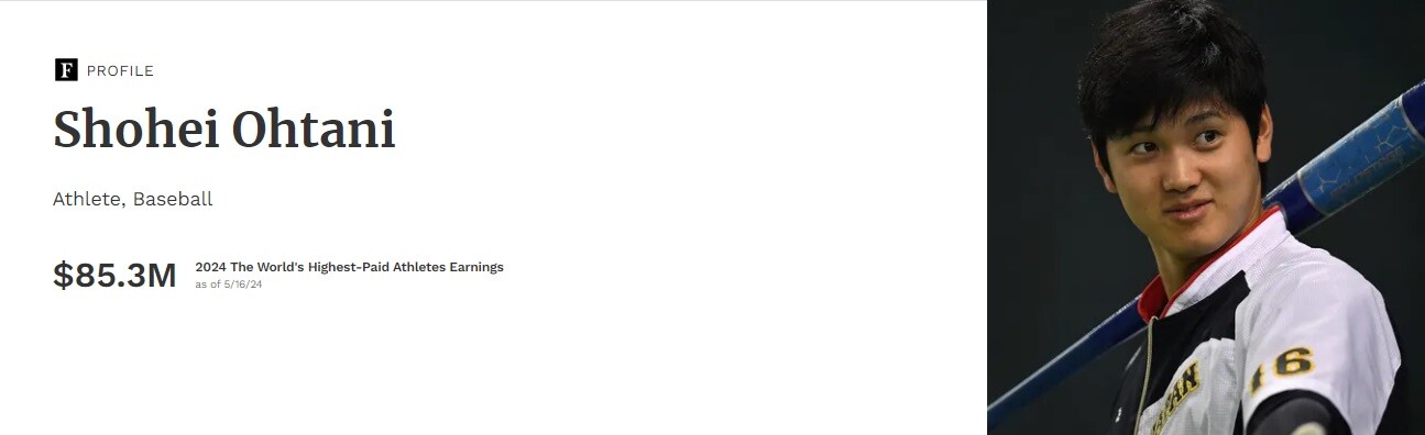 2024年世界スポーツ選手長者番付トップ50のうち10人が新たにランクインし、さらに8人がリストに復活した。F1ドライバーは、今年もハミルトンとフェルスタッペンの2人がトップ50に入り、日本人では大谷翔平が初めてランクインしたが、2022年まで常連だった大坂なおみは2年連続ランク外になった。