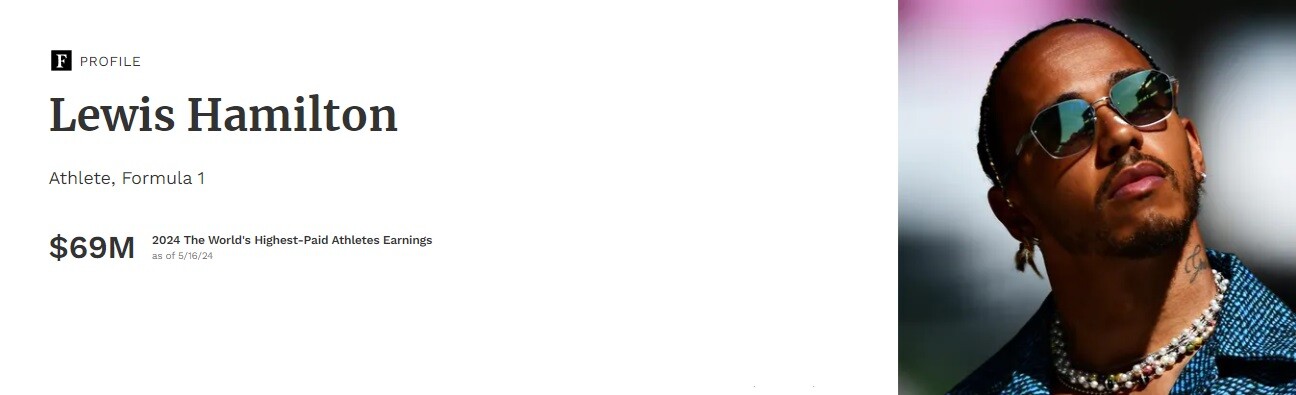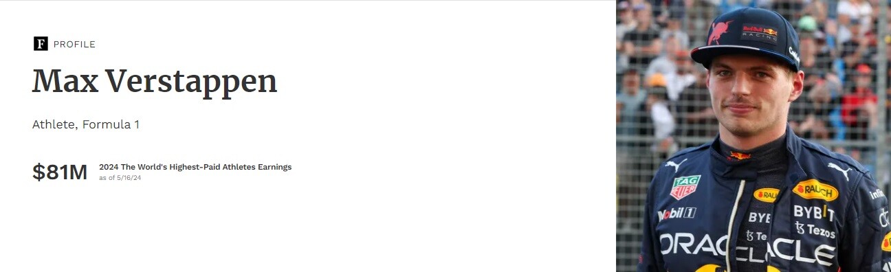 2024年5月16日にフォーブスが発表したトップ50、F1ドライバーはマックス・フェルスタッペンとルイス・ハミルトンがランクインした。