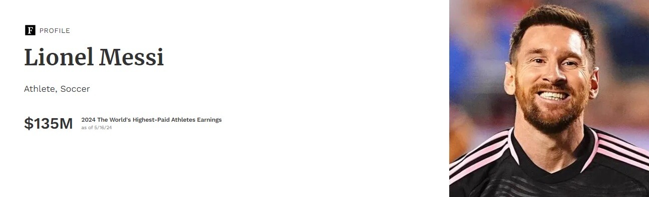 フォーブスが発表した2024年度版世界スポーツ選手長者番付。