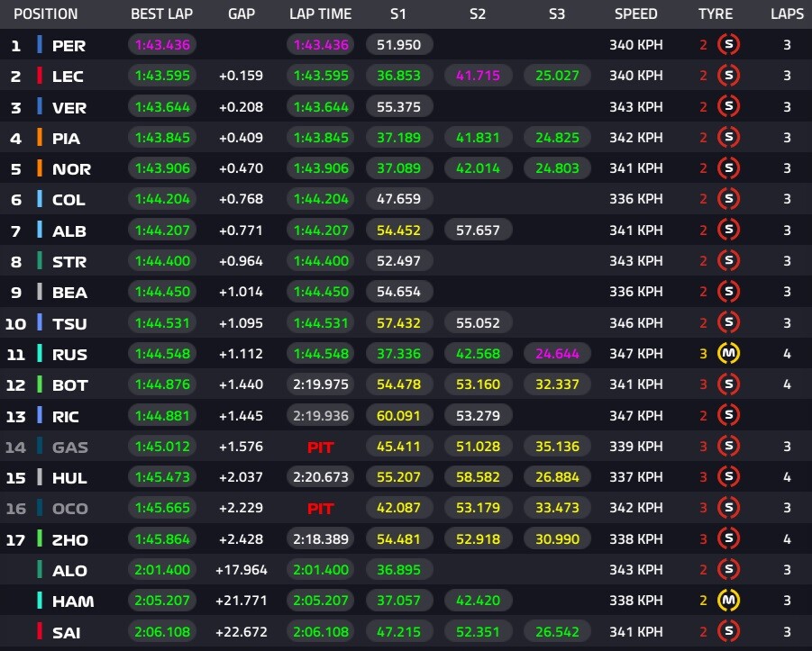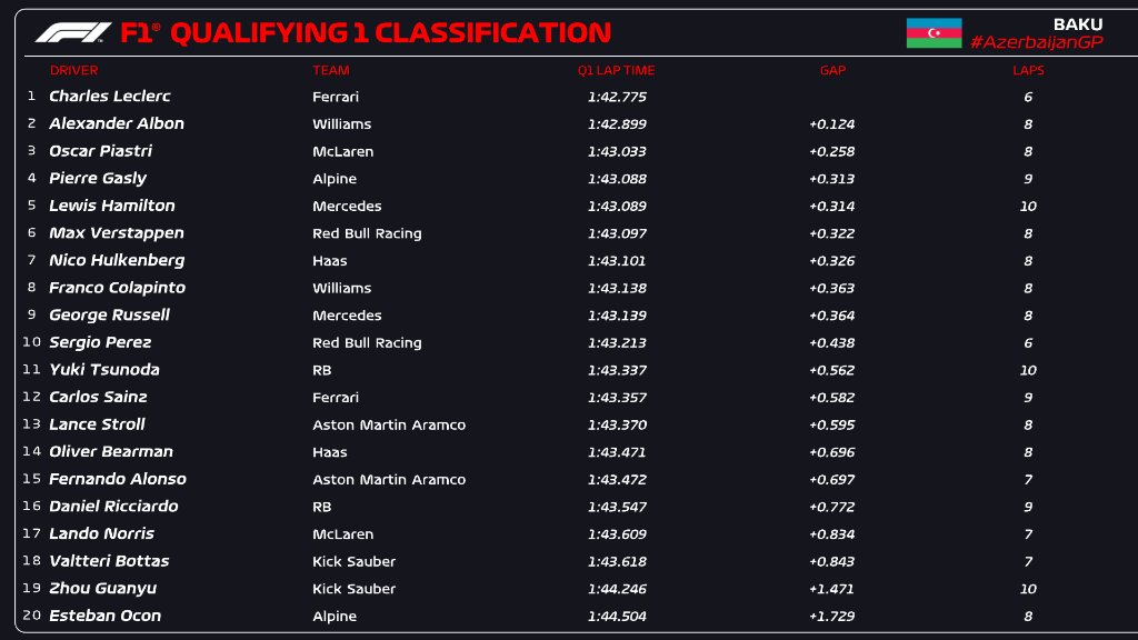 F1アゼルバイジャンGP予選Q1順位