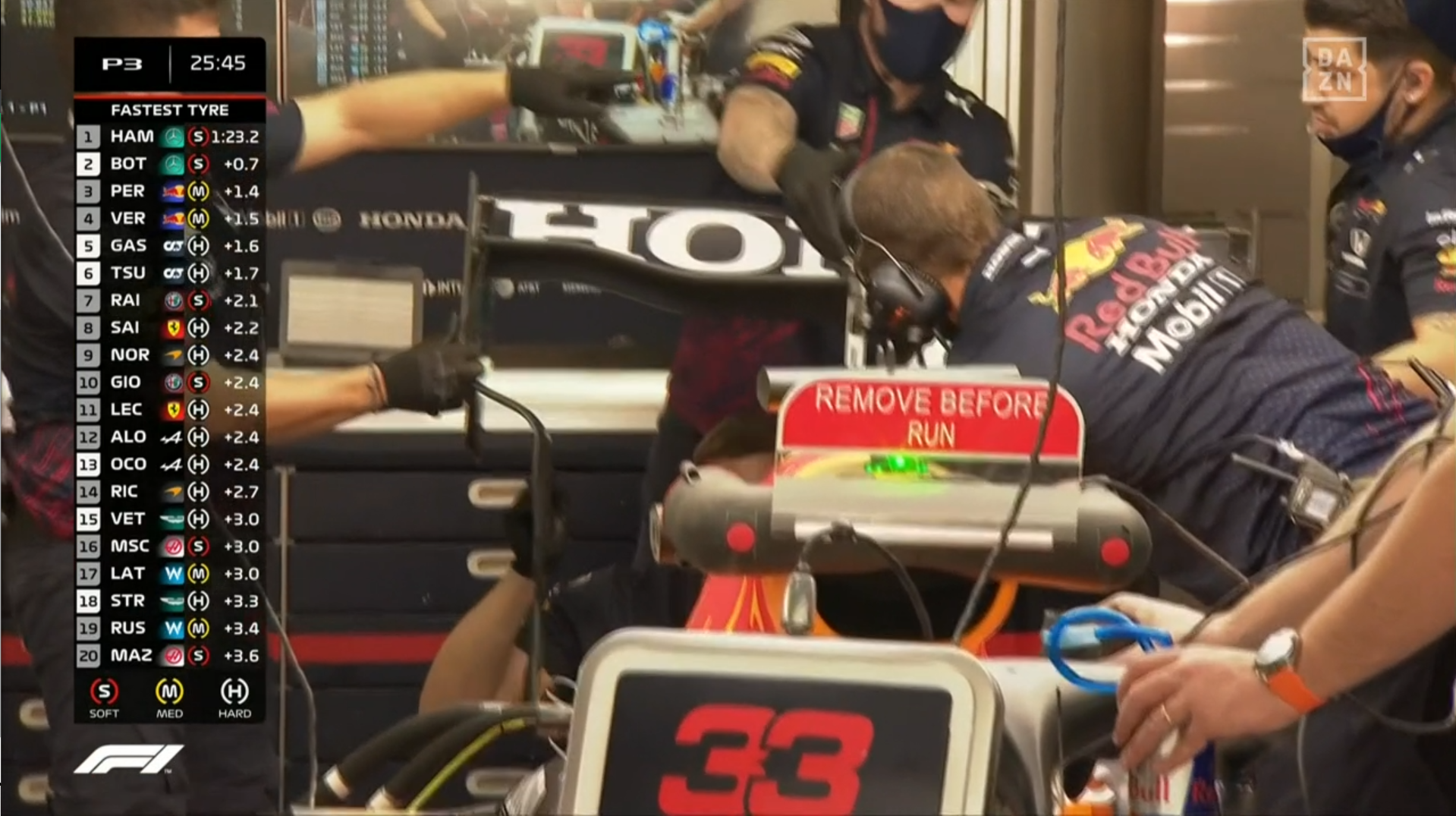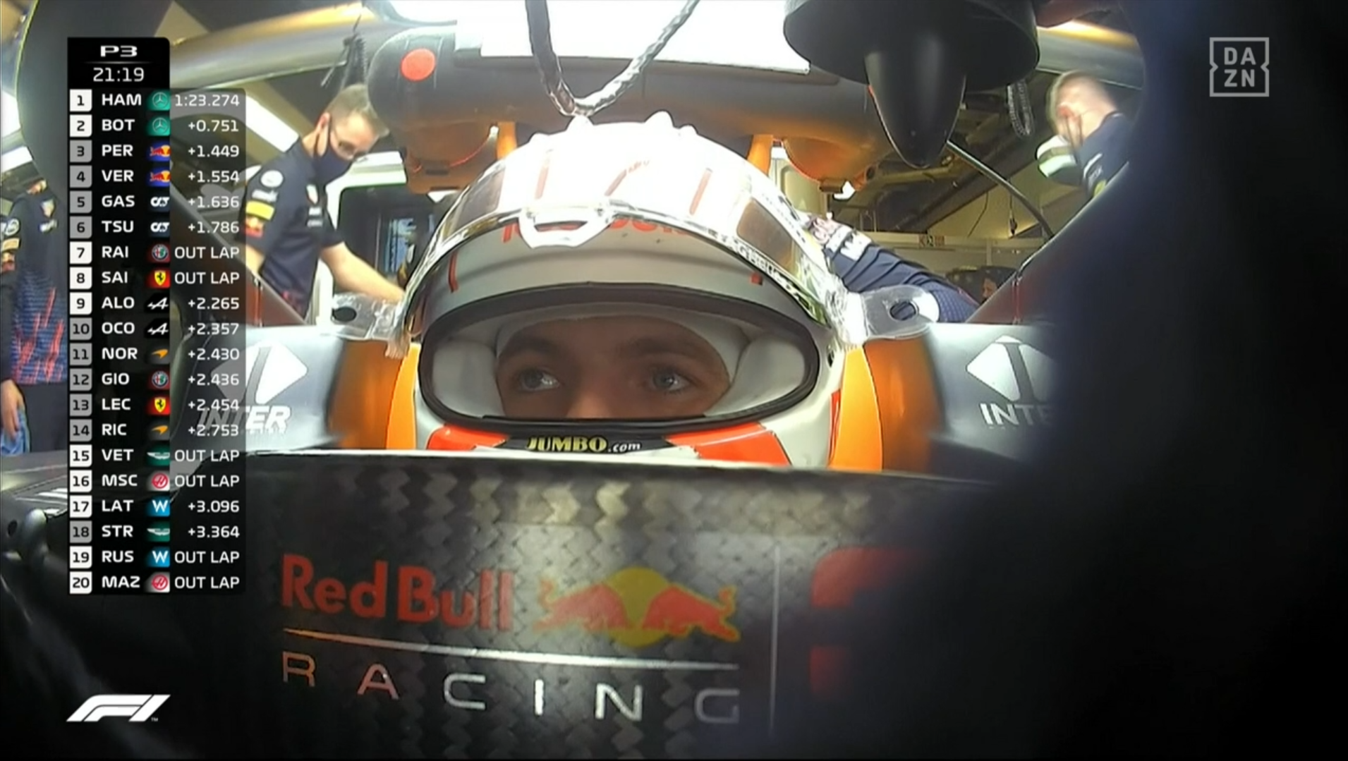 フェルスタッペン、ガレージに、あとは最後にスタート練習か