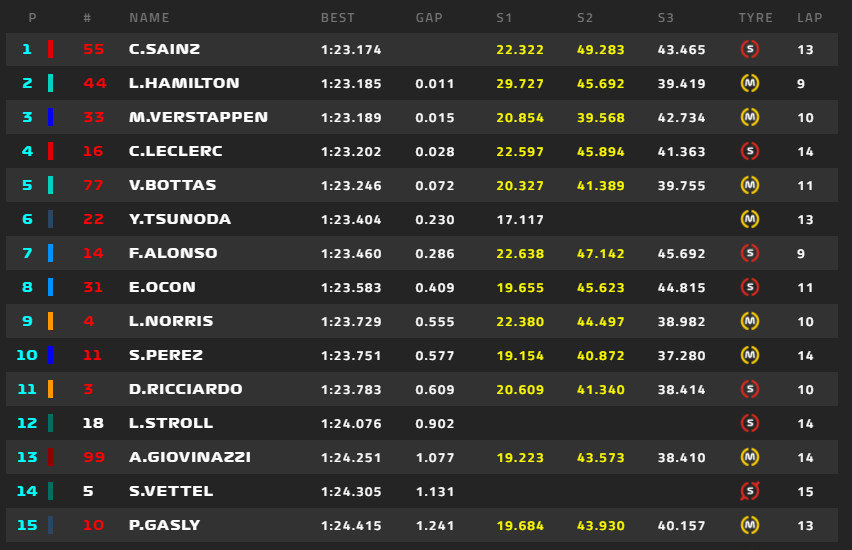 サインツ、トップタイム