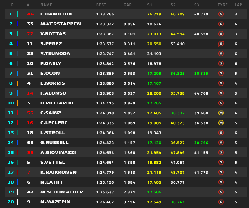 F1アブダビGP予選Q1順位