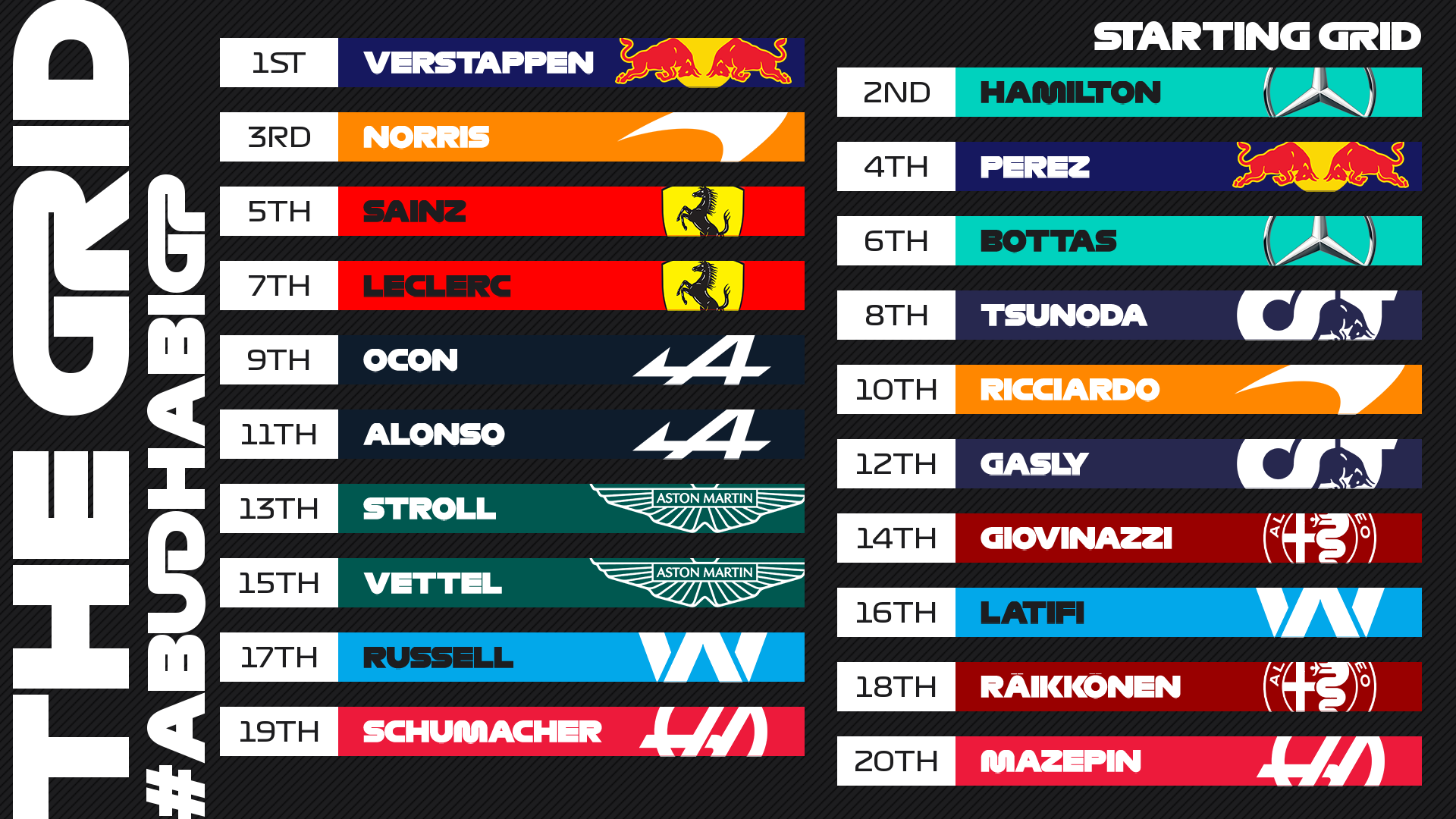 F1第22戦アブダビGP スターティング・グリッド