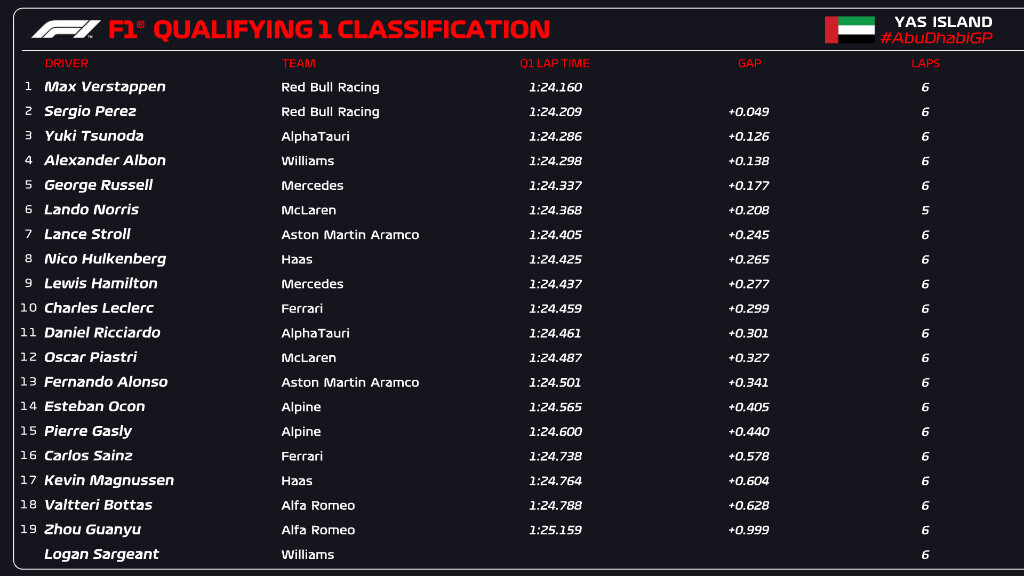F1アブダビGP予選Q1順位