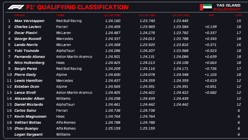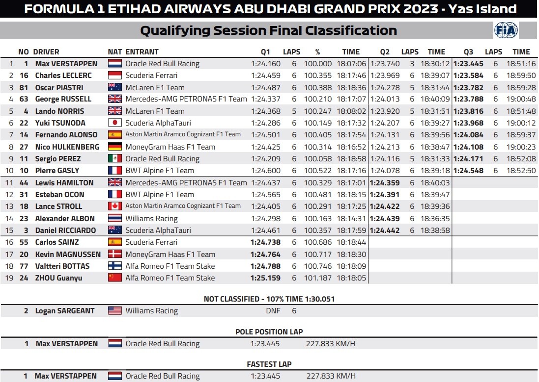2023年F1第23戦アブダビGP予選