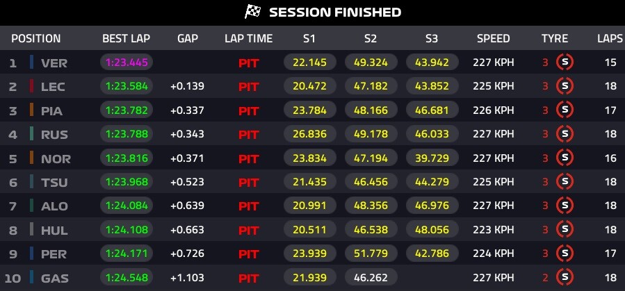 ルクレール10位、サインツ16位で終了。