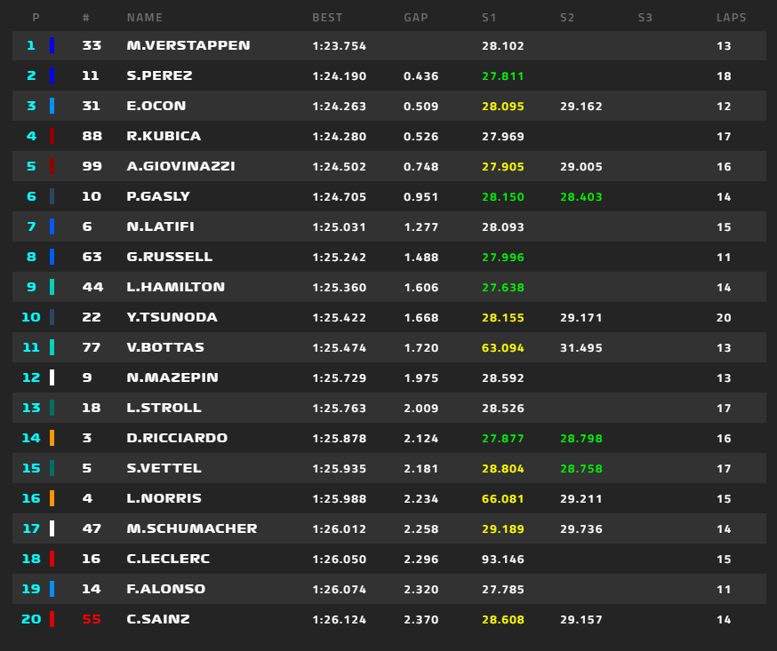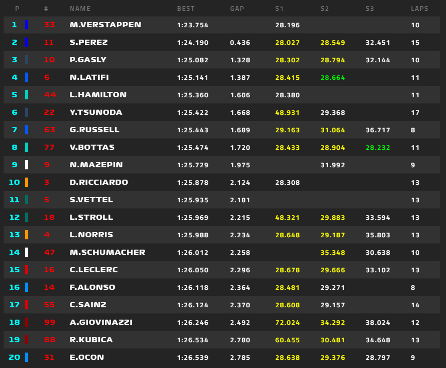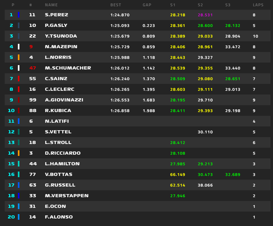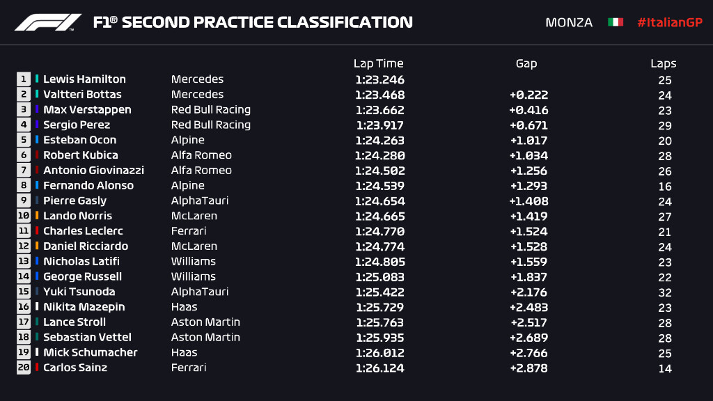 2021年F1イタリアGP全結果