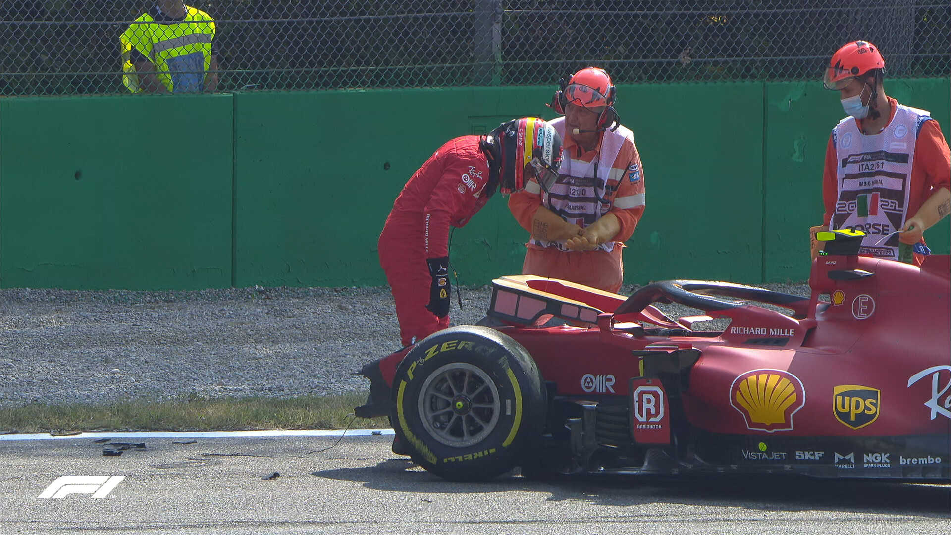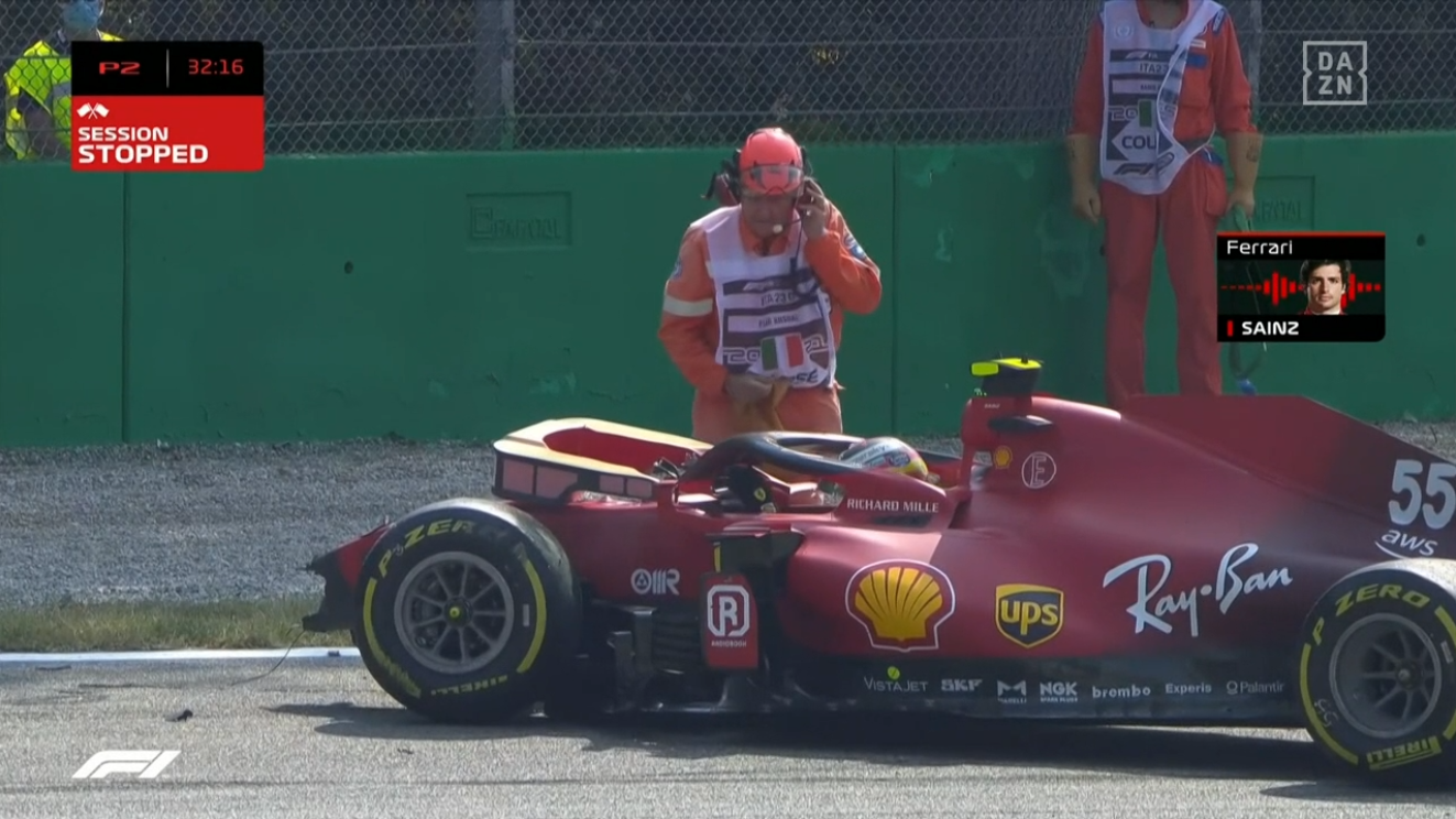 サインツの痛がっている声が無線から聞こえる