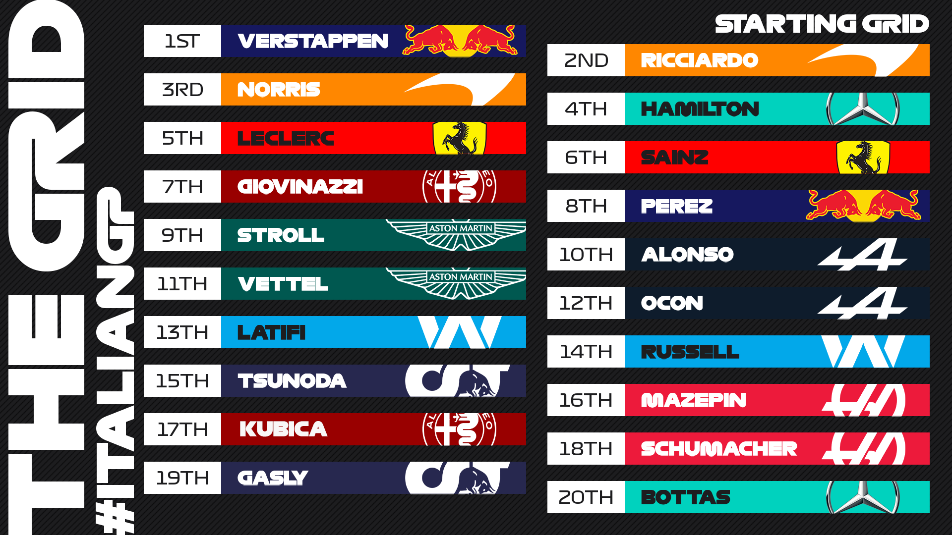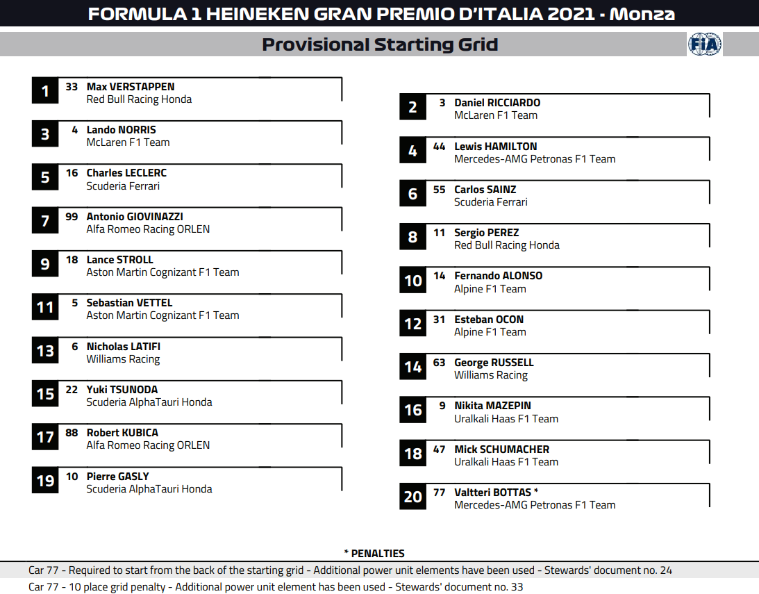 F1第14戦イタリアGP スターティング・グリッド