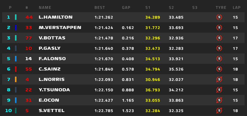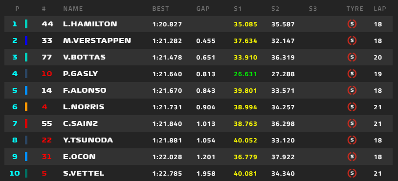 ハミルトン以外上位陣はタイム更新ならずで、2番フェルスタッペン、3番ボタス。