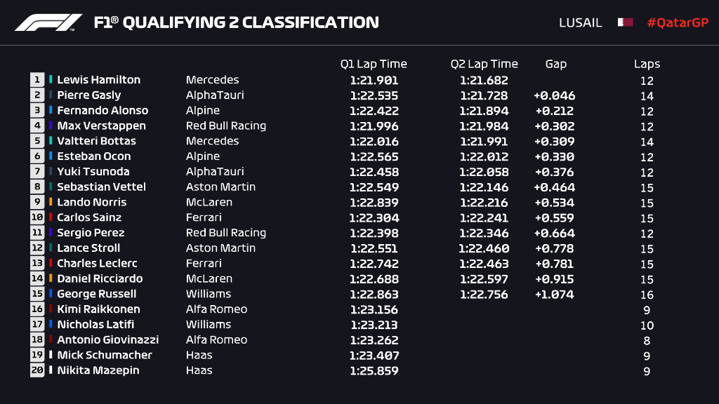 F1カタールGP予選Q2順位