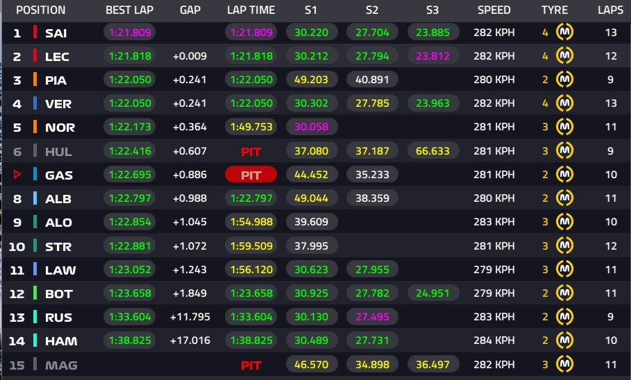 SQ1(12分):新品ミディアムタイヤ1セット指定