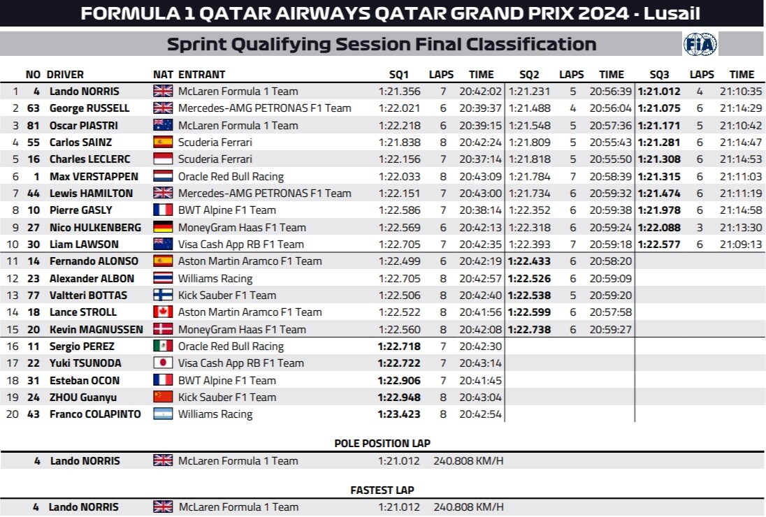 スプリント予選スタート 11月29日20時30分(日本時間26時30分)