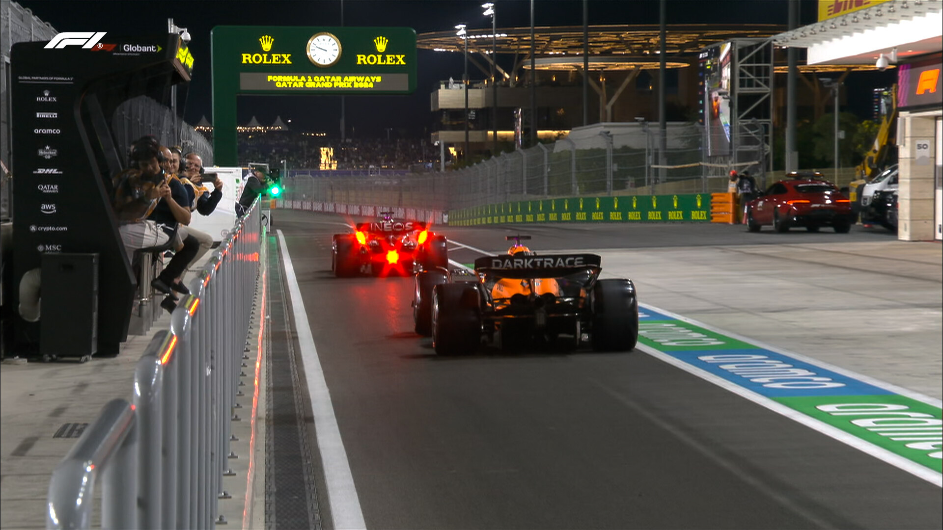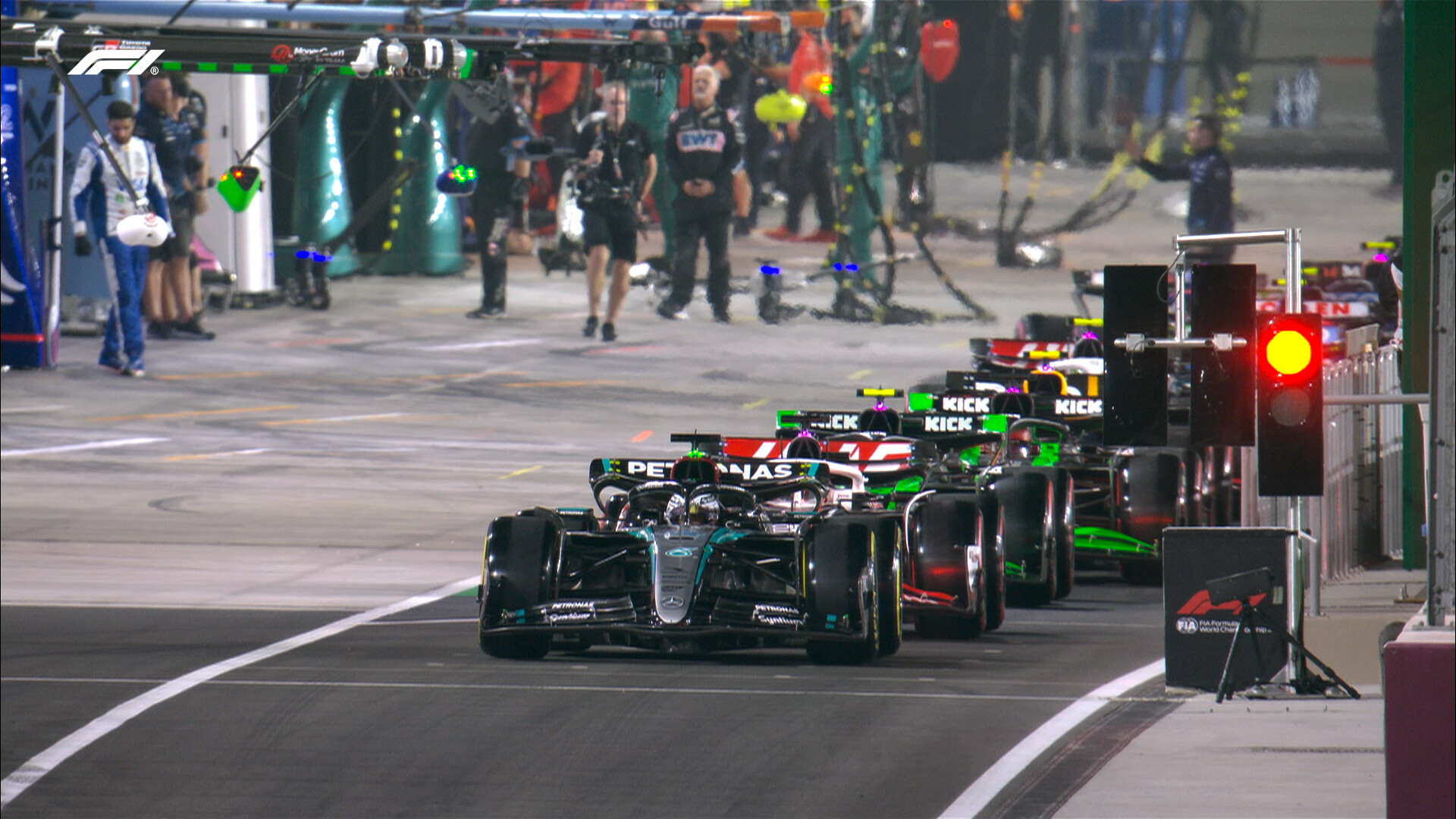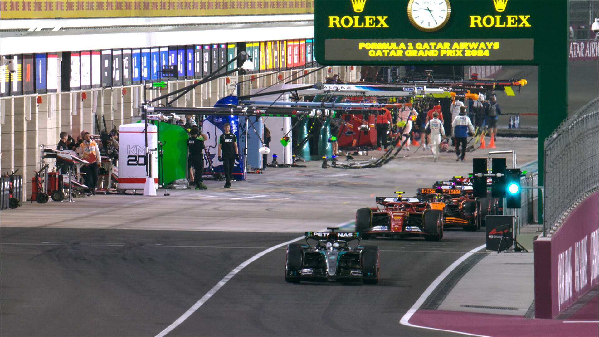サインツ、ガレージから出るときに、すでにピットレーンを走っていたハミルトンと接触しそうになる。