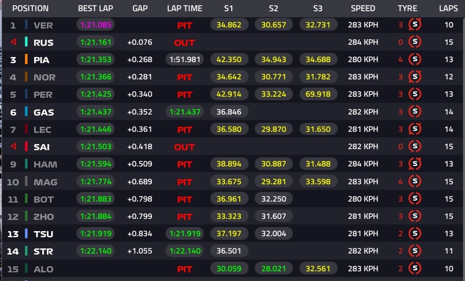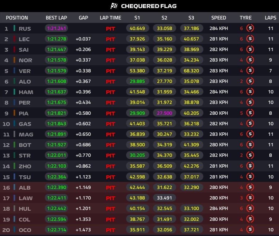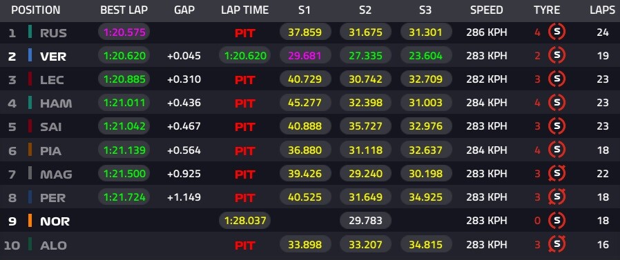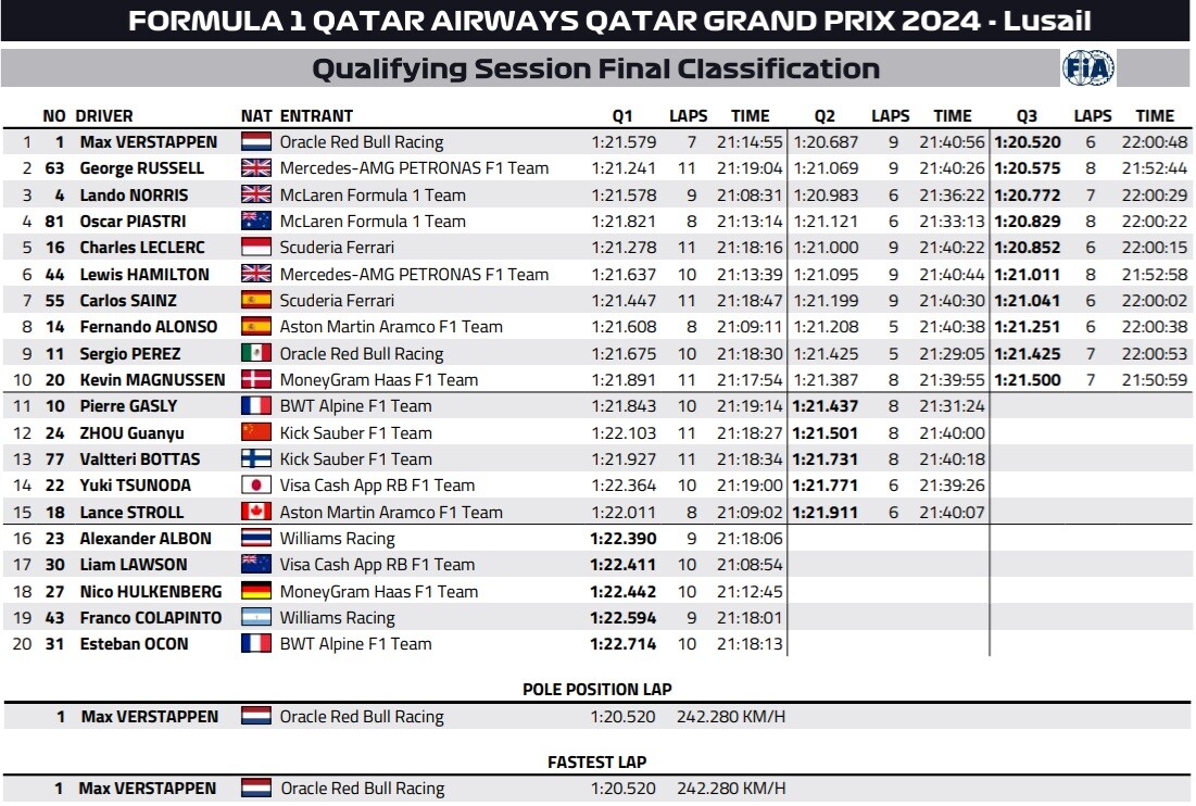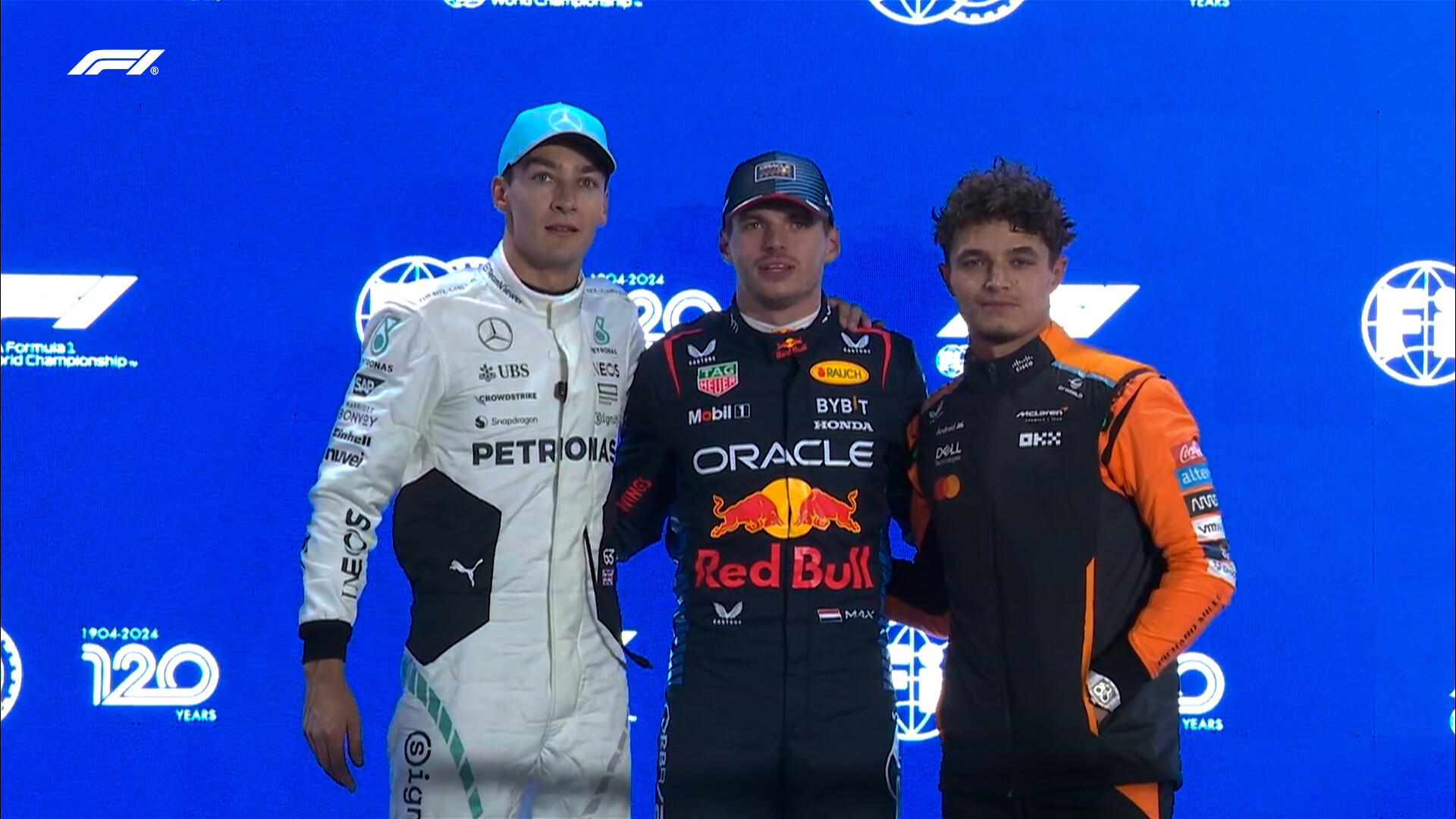 フェルスタッペン、久しぶりのポールだったが、ラッセルとのQ3での絡みで予選後にペナルティを受け、明日のポールは2位のラッセルになった。ただし、予選の結果はフェルスタッペンがトップのまま。