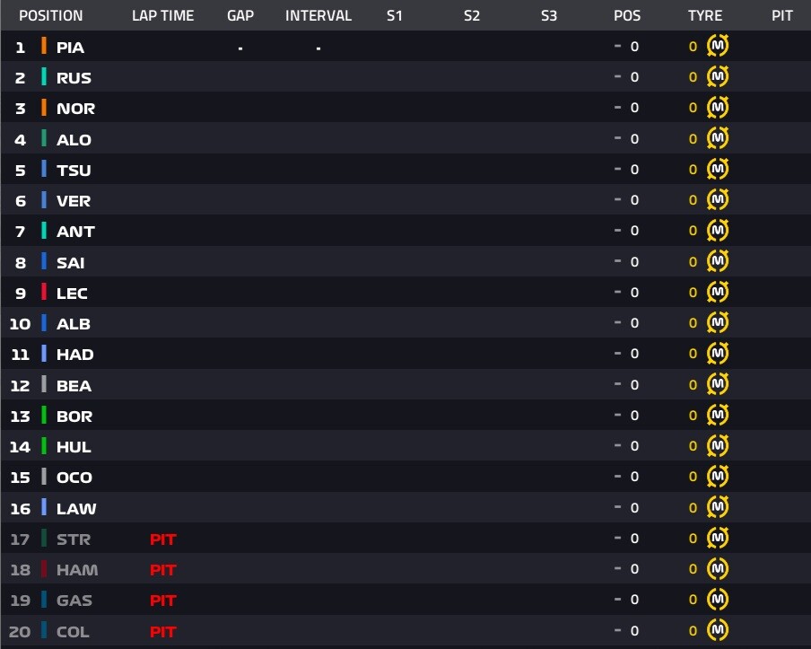 全車ミディアムタイヤ、表示が間違っている。