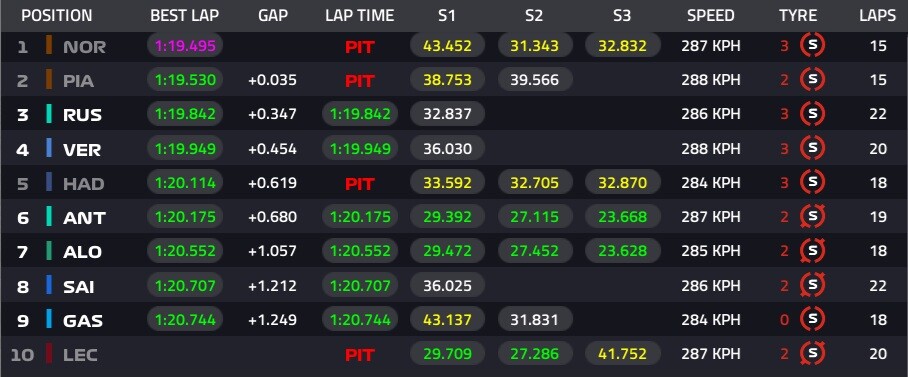 ノリス、アタックに入れずピットに戻った。