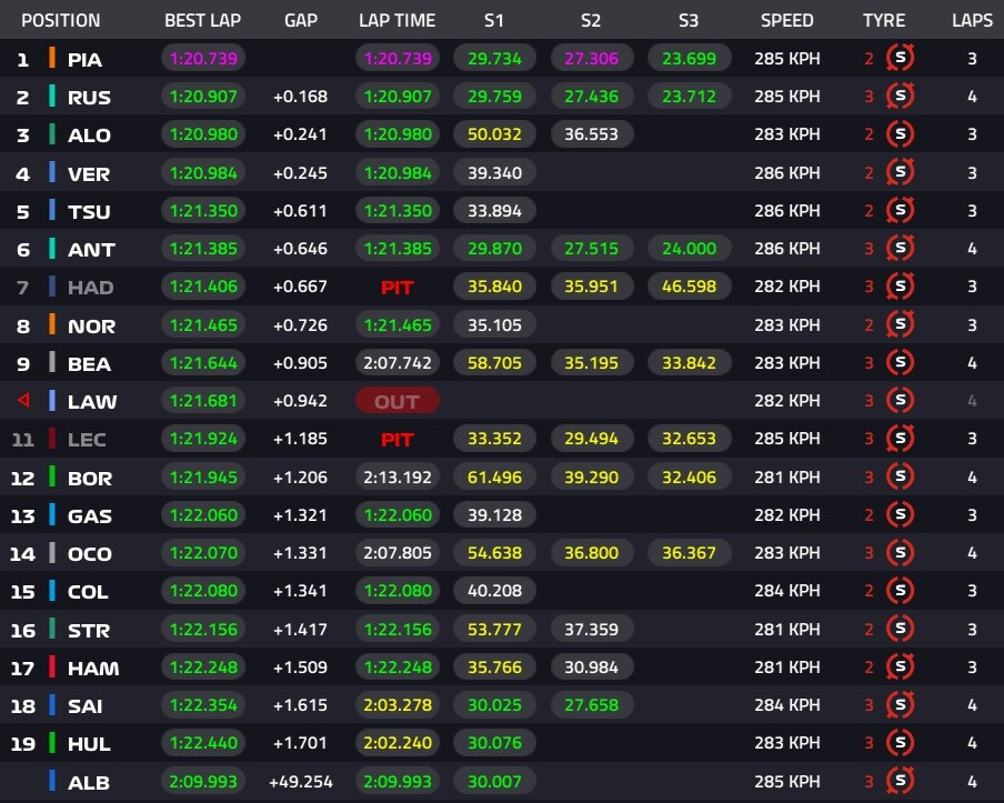 ラッセル、トップタイム