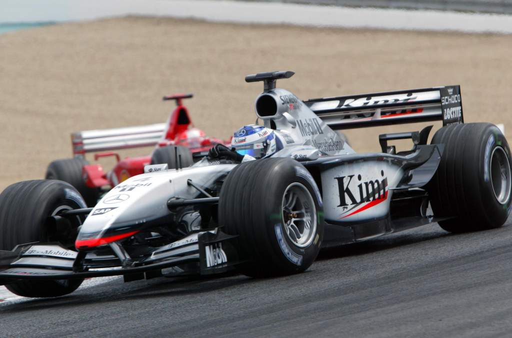 キミ・ライコネン(マクラーレン)とミハエル・シューマッハ(フェラーリ)のバトル:2002年F1フランスGP