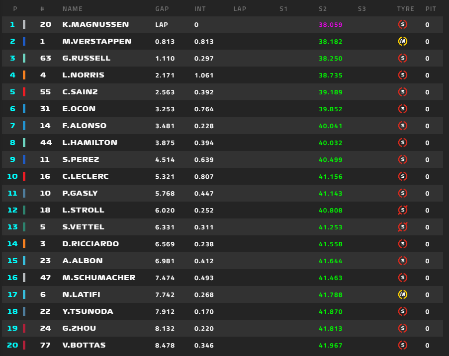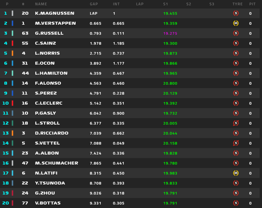 フェルスタッペン、マグヌッセンを抜いてトップに