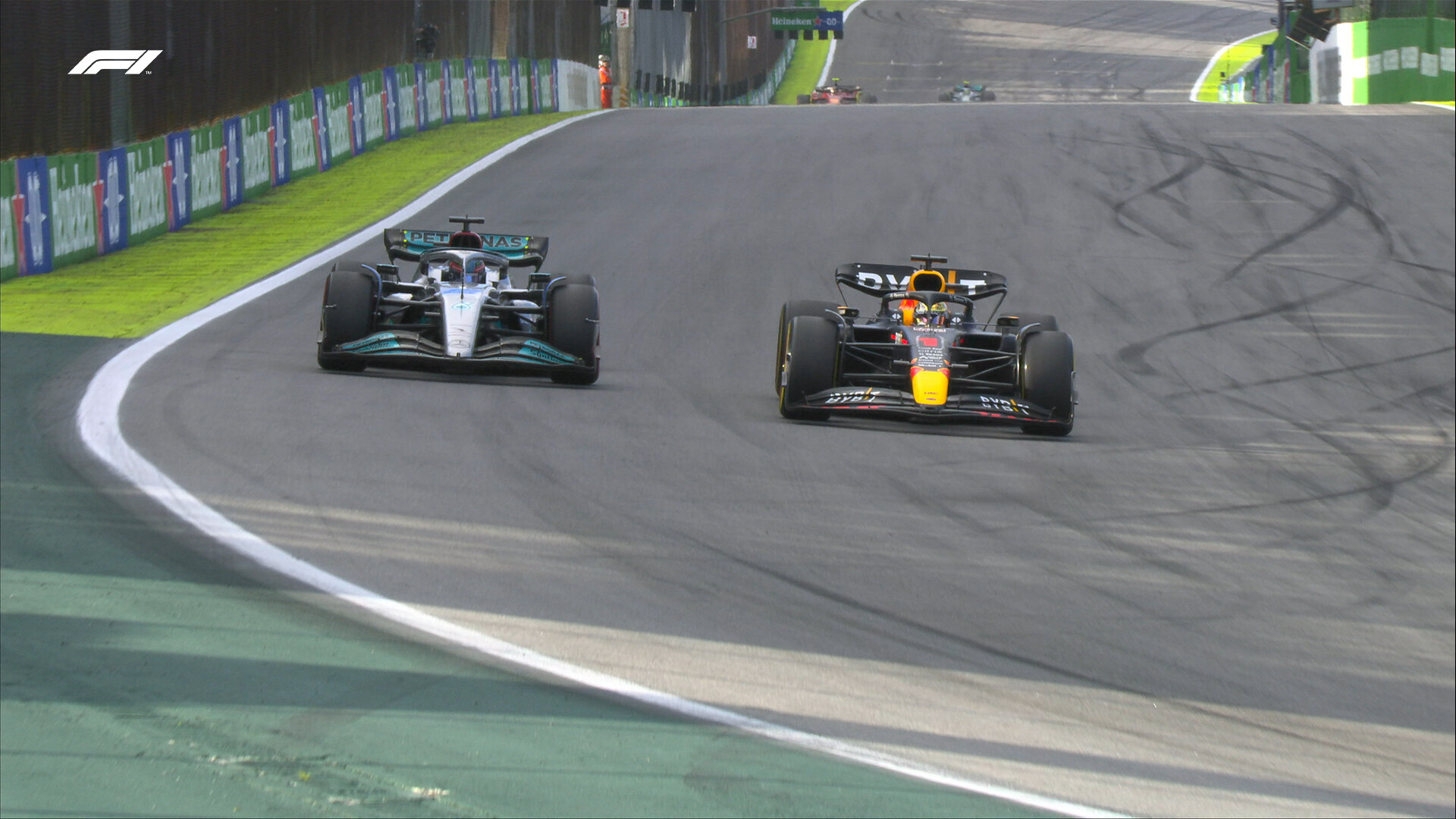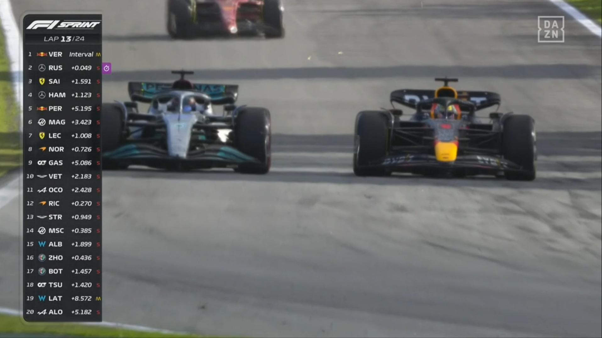 ラッセルがフェルスタッペンにアタックしている