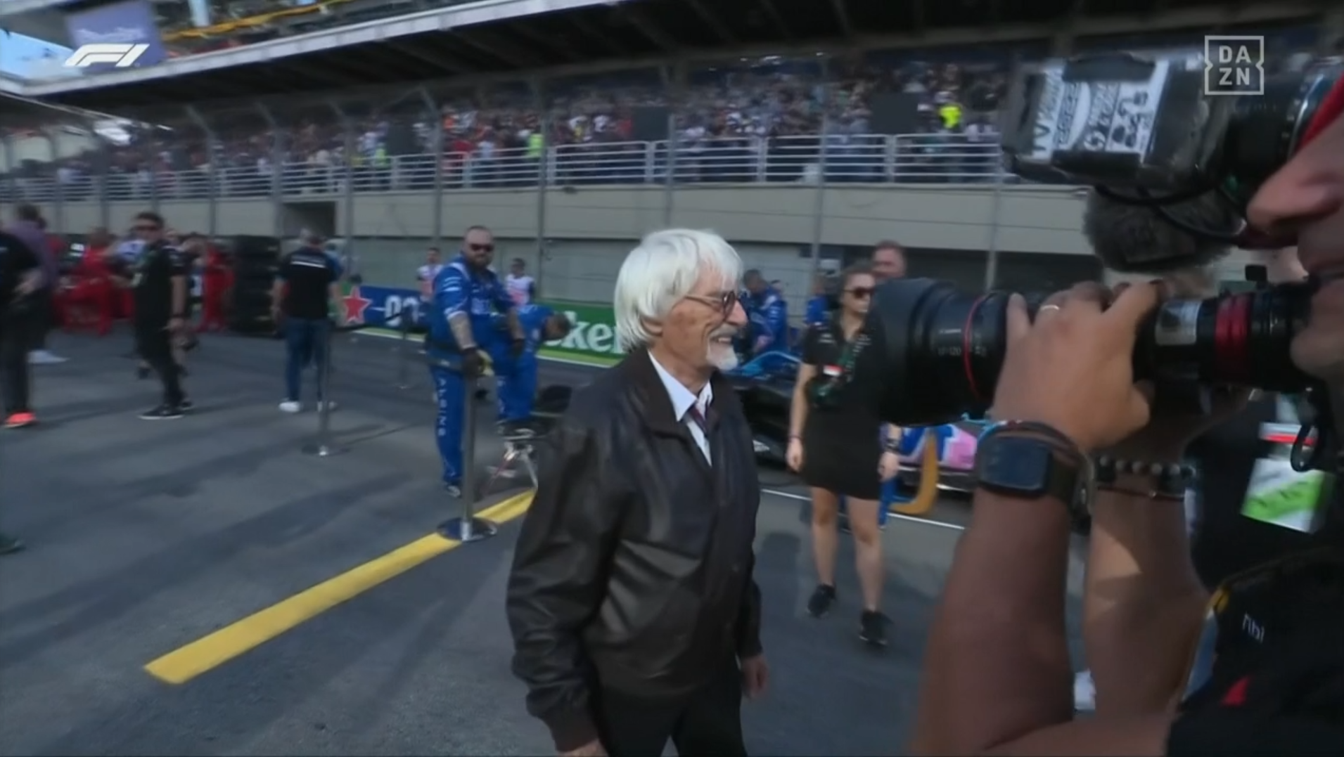 バニー・エクレストンが来ている! 革ジャン着ている、懐かしい。:若い奥様の母国グランプリ