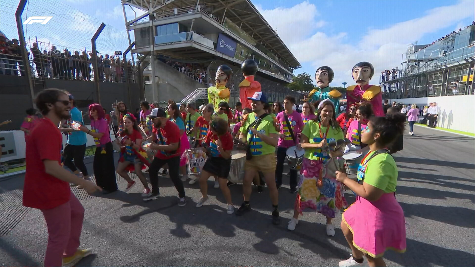 トラック内で歓迎的なセレモニーが行われている。
