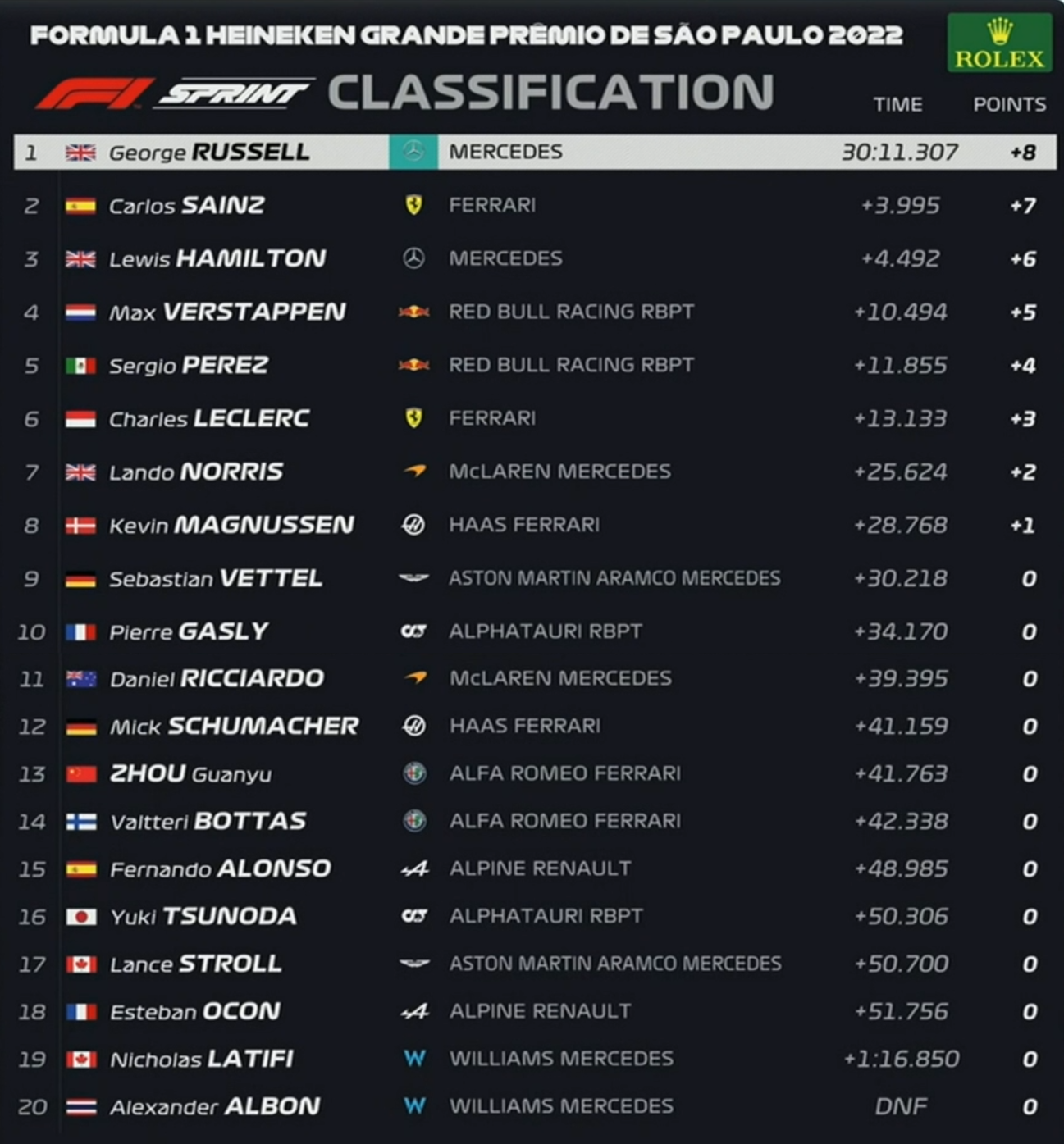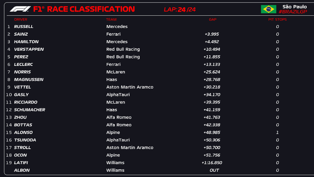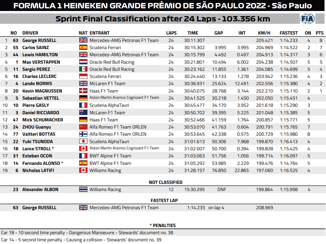 2022年F1サンパウロGP全結果