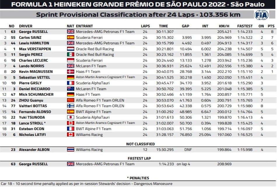 スプリント後、アロンソはペナルティを受け、順位が入れ替わった。↑↓