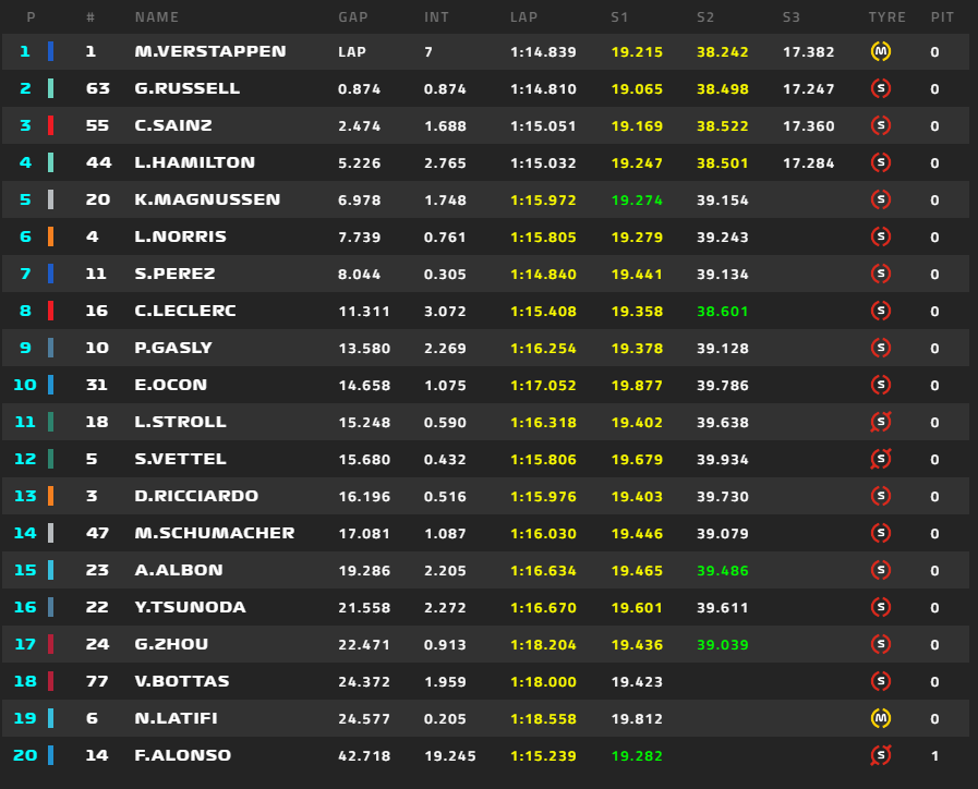 ラッセル、フェルスタッペンを抜いてトップに
