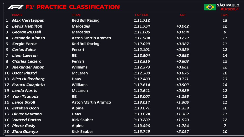2024年F1第20戦サンパウロGPフリー走行1回目