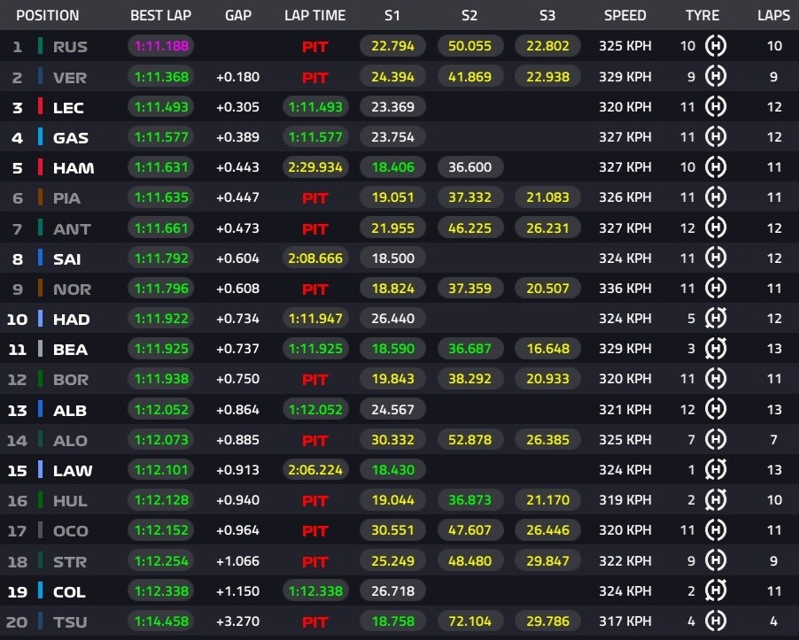 フェルスタッペンのタイヤはハード、表示は間違っている。