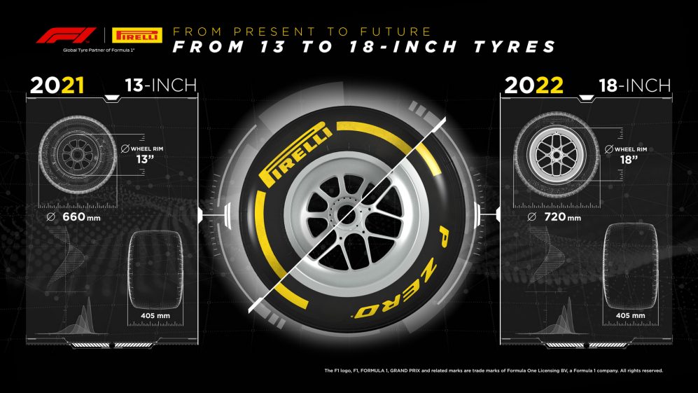 13インチから2022年の18インチへの進化を示すピレリのインフォグラフィック
