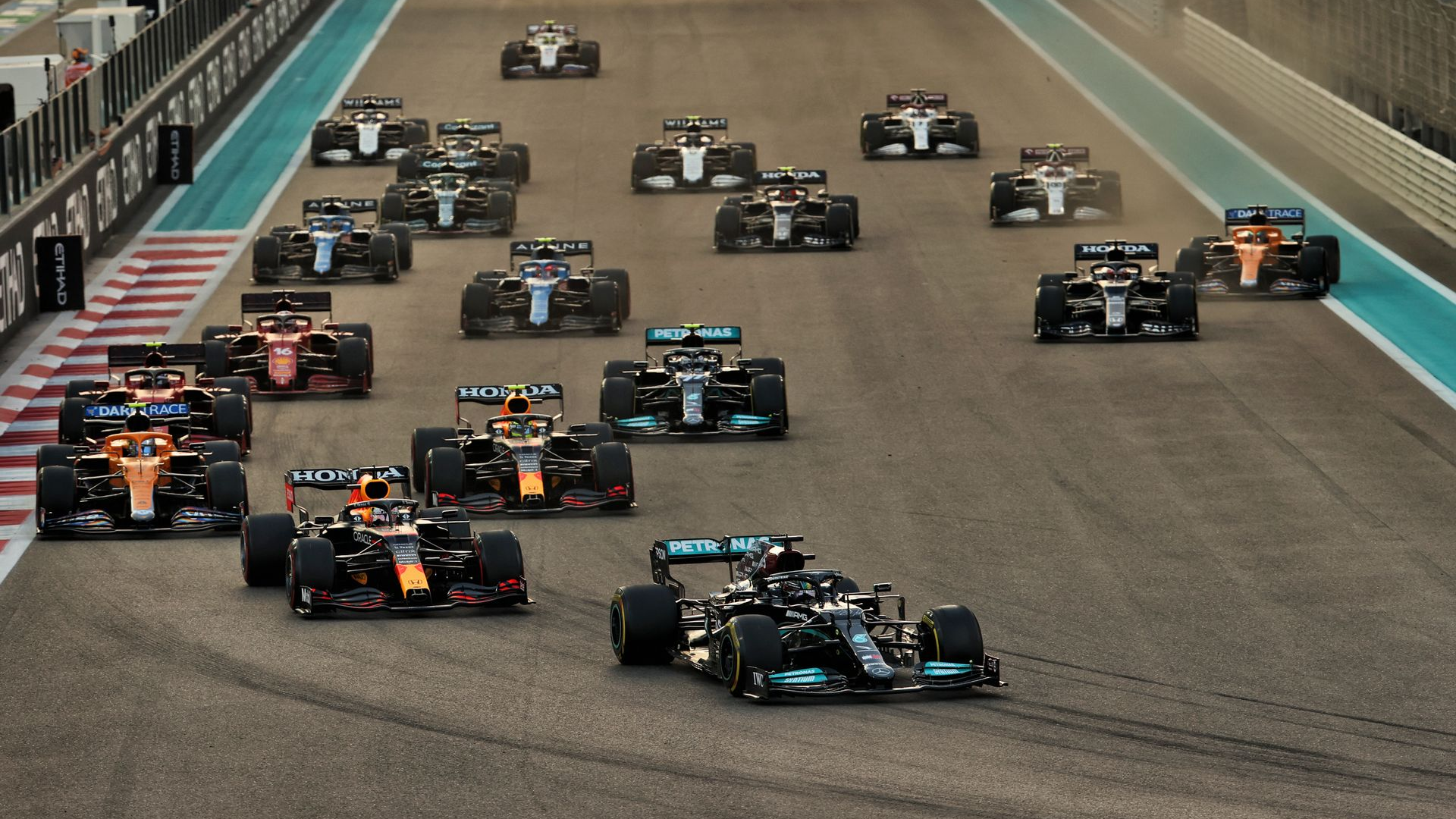 2番スタートのハミルトンは、最初のコーナーでポール・シッターのレッドブルを抜いて首位に立ち、58周中53周目にセーフティカーが出動するまでは、レースをコントロールして、前人未到の8回目のタイトルに王手をかけたように見えた。
