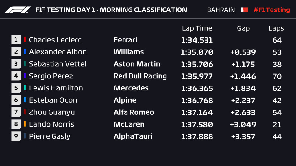 2022年F1プレシーズンテスト 3月10日午前のタイムシート
