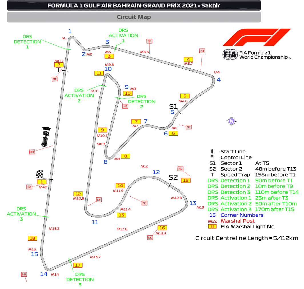 バーレーン国際サーキットは3つのDRSゾーンがある。