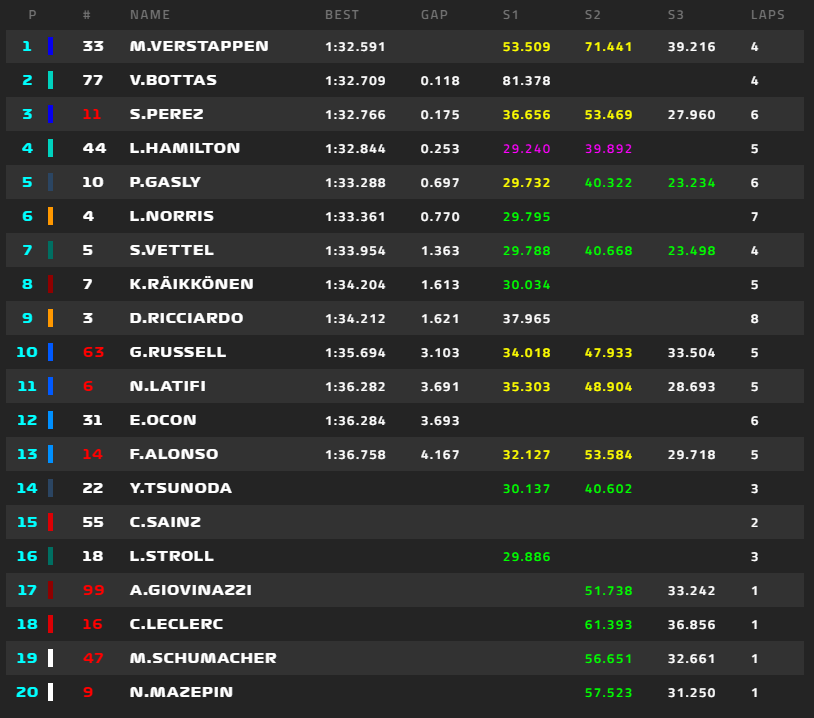 順位 - 開始30分And he's joined on track by Max, too! 😎 pic.twitter.com/p8zJVwmHwY
