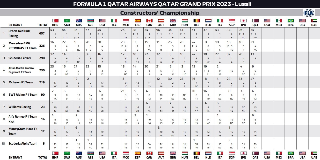 2023年F1コンストラクターズ・ランキング