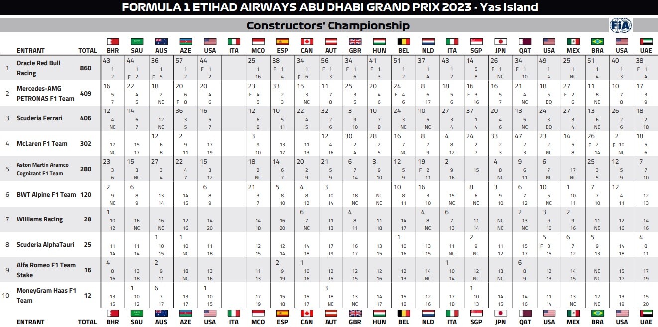 順位 得点 ドライバー (コンストラクター) 優勝回数