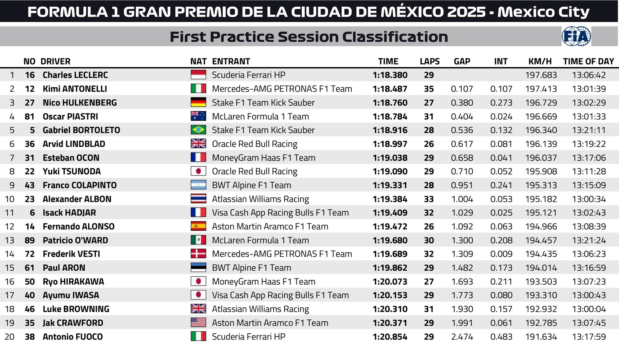 2025年F1第20戦メキシコシティGPフリー走行1回目