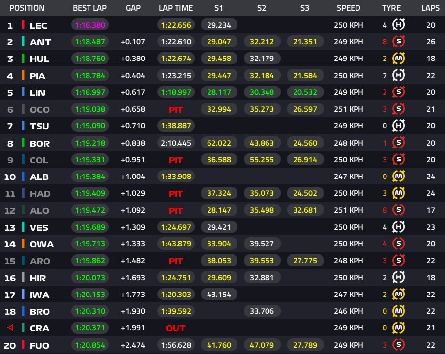1位ルクレール、2位アントネッリ、3位ヒュルケンベルグ