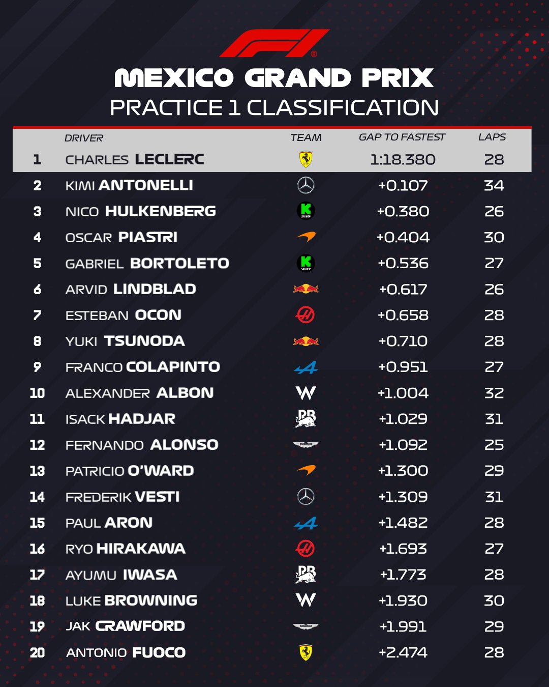 — Formula 1 (@F1) October 24, 2025