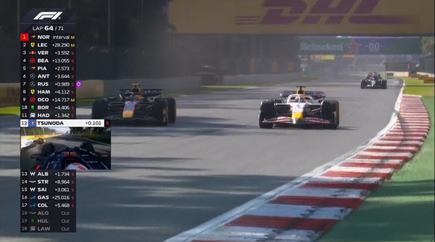 ピアストリ7位、アントネッリ8位、ハミルトン9位でコースに合流。