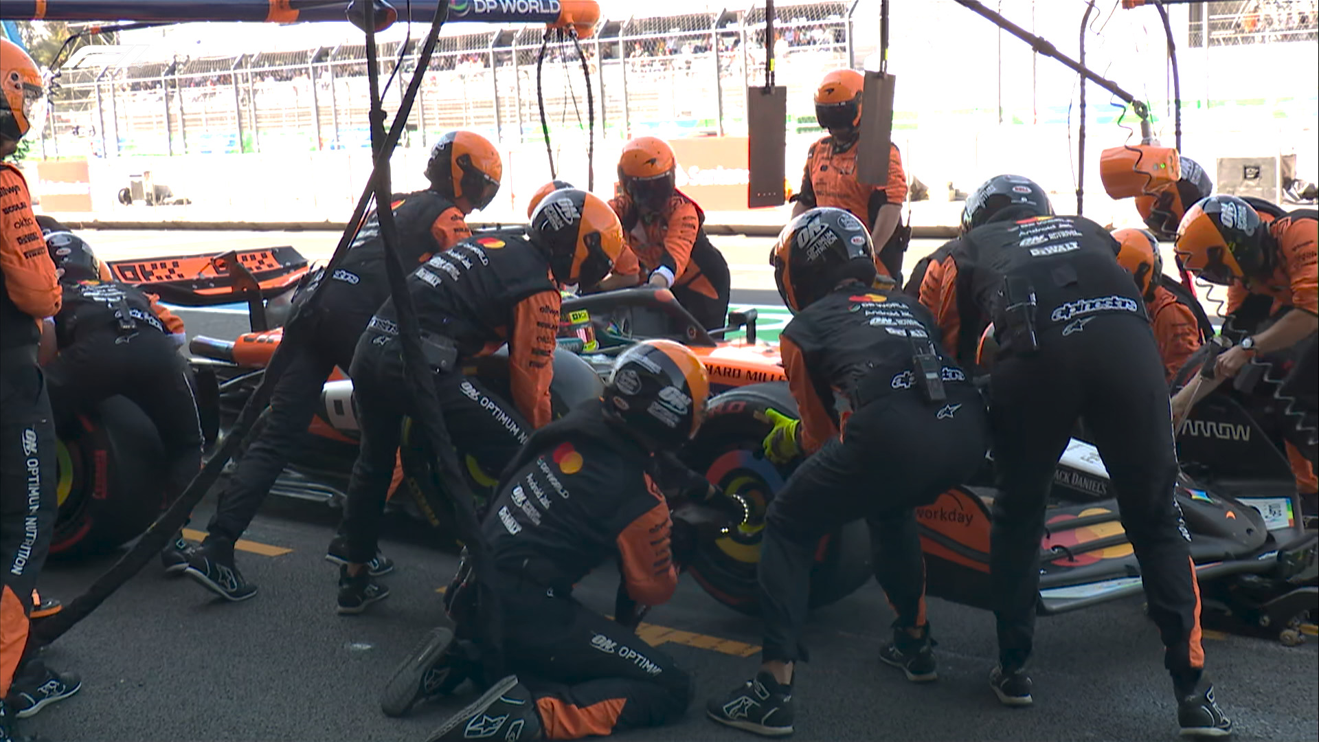 ベアマン、ピアストリ、ピットイン、両車ミディアムタイヤに交換