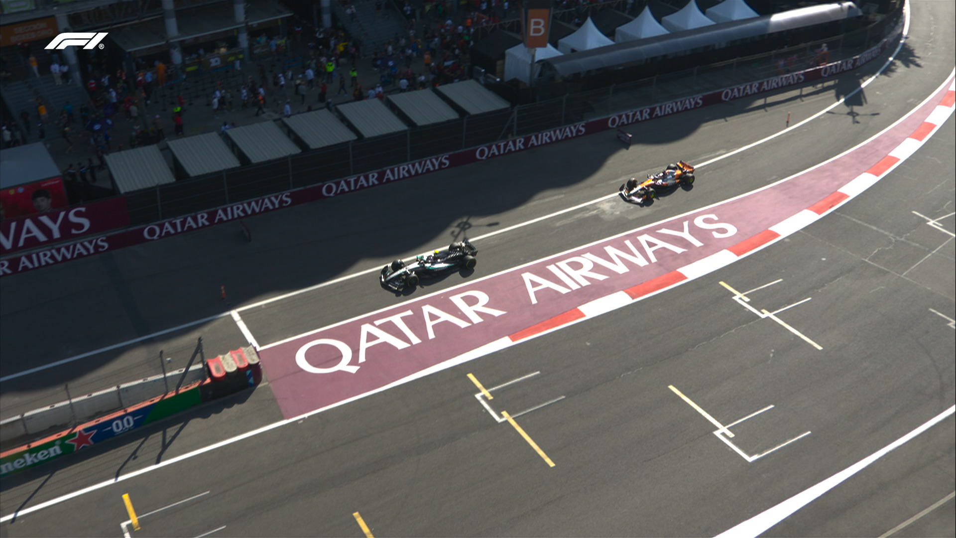 ラッセル「ここはキミよりずっとペースがいい!」、後ろにはピアストリが迫っている。