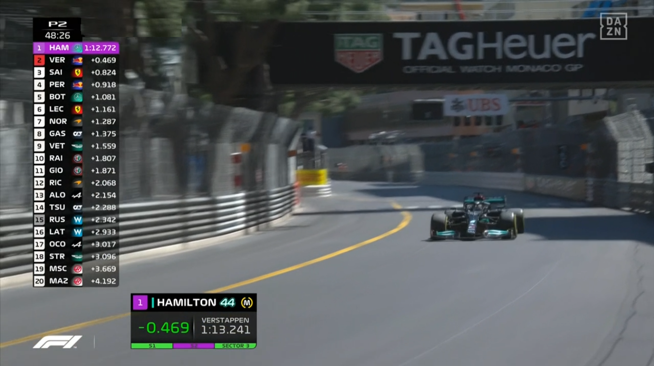フェルスタッペン、トップタイムを更新したが、すぐ後ろのハミルトンがさらに速い。