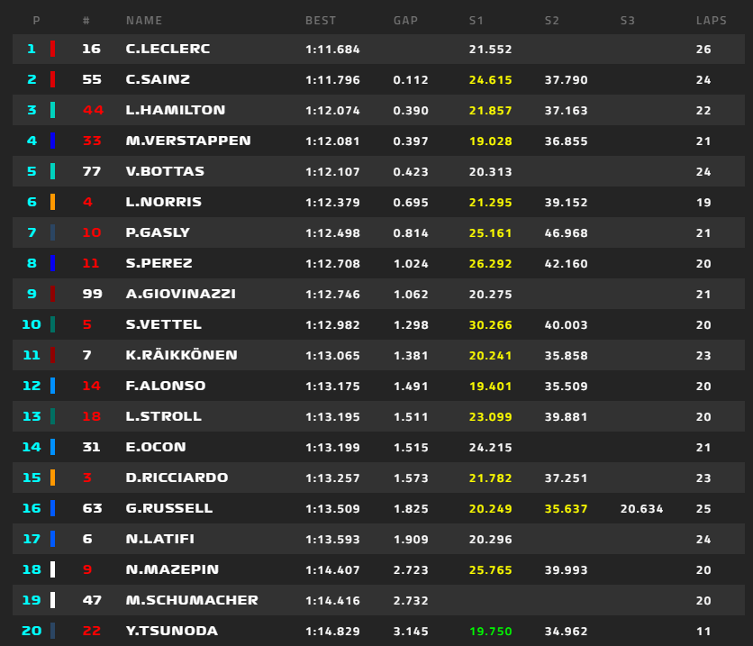 ルクレール、トップタイム、フェラーリがトップ2に